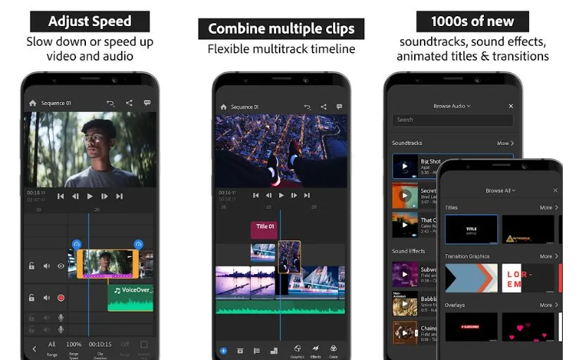 Adobe Premiere Rush یکی از دو اپلیکیشن ویرایش ویدیویی است که عملکردی فراتر از اپلیکیشنهای معمولی ارائه میکند. اپلیکیشن دوم هم Adobe Premiere Clip است که تجربهای نزدیکتر به تدوینگرهای ویدیوی موبایل استاندارد دارد. در هر صورت Adobe Premiere Rush یکی از جدیدترین اپلیکیشنهای ویرایش ویدیوی این لیست است و عملکردی بسیار خوب دارد. این نرمافزار همراه با قابلیتهای کلیدی مانند تایملاین چند ترکه، همگامسازی ابری و چند ابزار تدوین پیشرفته از راه میرسد. البته ادوبی هنوز باید دستی به سر و روی رابط کاربری کشیده و برخی باگها را برطرف کند، اما پتانسیلها بیشمارند. علاوه بر این، اگر پیشتر اشتراک Adobe Creative Cloud را خریده باشید دلایل بیشتری برای استفاده از این اپلیکیشن دارید.